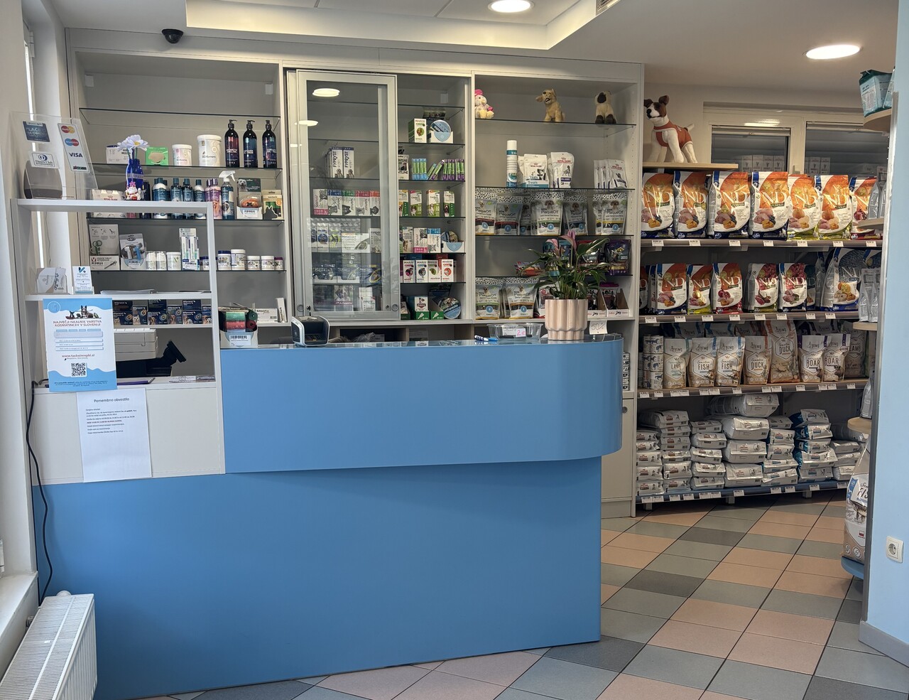 Trgovina za male živali je odprta v ordinacijskem času veterinarske klinike, vsak delavnik od 8. do 20. ure in ob sobotah od 8. do 15. ure.